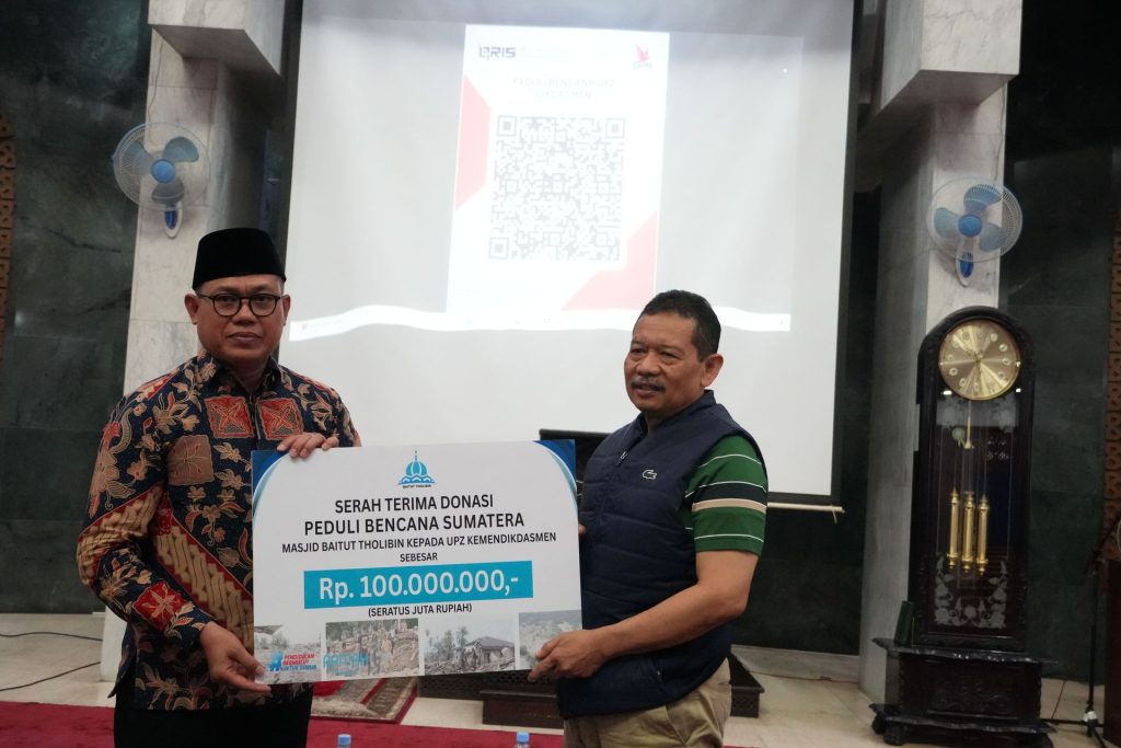 JN-DKM Baitut Tholibin, hari ini, (2/12) mengumumkan penyaluran bantuan dana darurat sebesar Rp100 juta untuk membantu ribuan warga pendidikan yang terkena dampak banjir bandang dan longsor di Sumatra melalui Unit Pengumpul Zakat (UPZ) Kementerian Pendidikan Dasar dan Menengah (Kemendikdasmen).