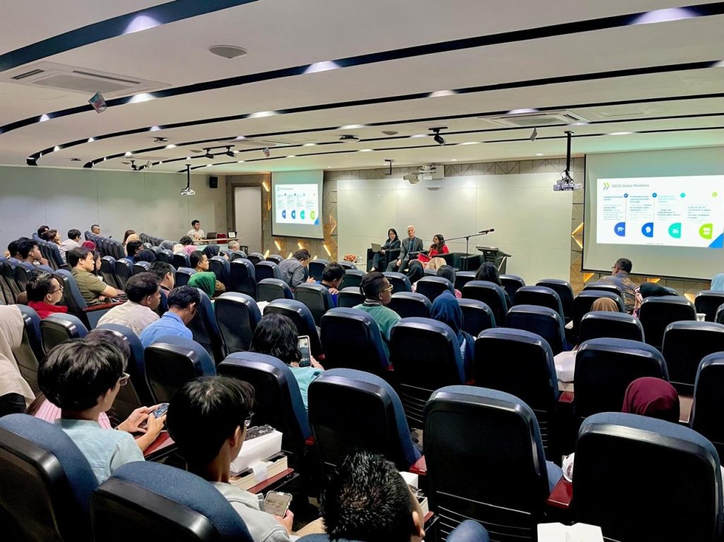 Pada kesempatan tersebut Prof. Bambang Brodjo juga menjelaskan bagaimana aksesi OECD dapat mengarahkan jalan yang tepat bagi Indonesia untuk keluar dari MIT dan menuju negara High-Income Country. Ia memaparkan bahwa aksesi OECD dapat menjadi anchor reformasi bagi Indonesia. Kerangka standar dan praktik terbaik OECD memberikan arah yang jelas untuk memperkuat tata Kelola regulasi, meningkatkan produktivitas, serta memastikan konsistensi kebijakan dalam jangka panjang.